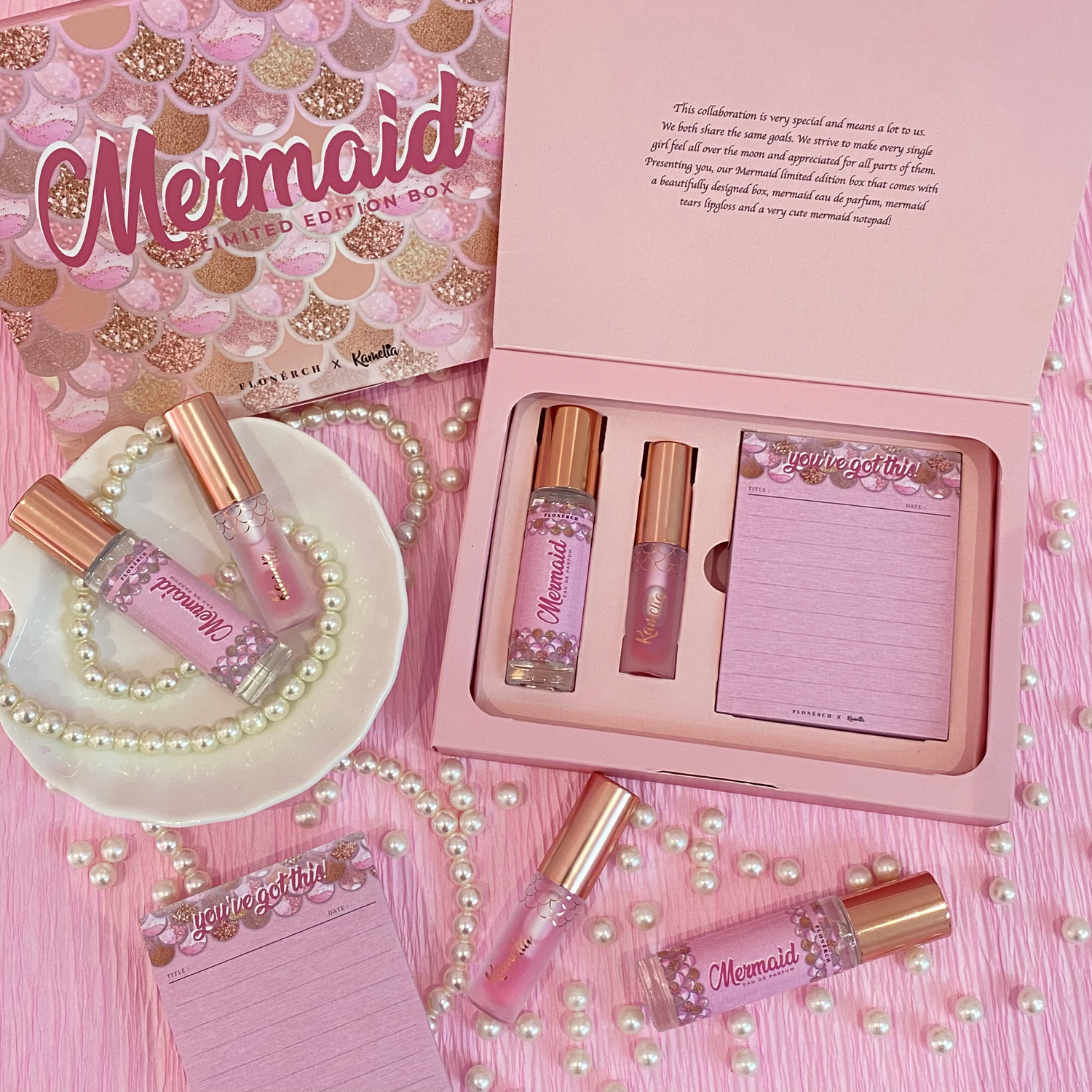 We joined hands with Kamelia Cosmetics, two dreams intertwining like mermaid braids, whispering the same truth: every girl deserves to feel like a dazzling treasure chest of confidence. This collaboration isn't just a limited edition box; it's a shimmering portal to your inner mermaid.