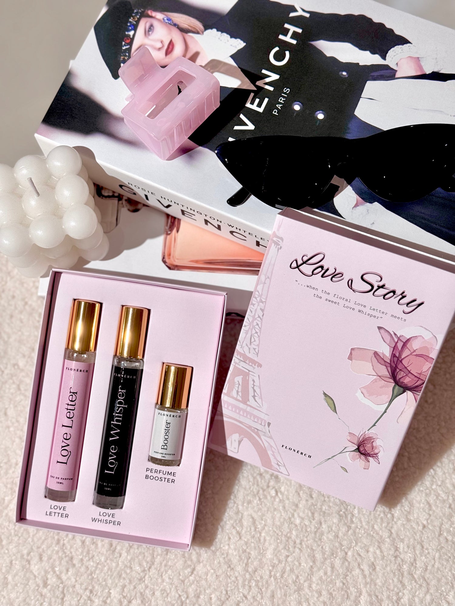 It all begins in Paris, The City of Love, where cobbled streets echo with laughter and hearts whisper secrets in a language only lovers understand. In May 2022, Flonerch unveils a limited edition love story – not just a fragrance, but a journey bottled. Discover the timeless elegance of Love Letter and embrace the intimate whispers of Love Whisper. In this exquisite blend, Flonerch invites you to dance with Alia's love story, filling the world with a radiant completeness you never knew was missing. Embrace your own Parisian fairytale – the enchanting Flonerch Love Story, a limited edition masterpiece whispered for a fleeting moment.
