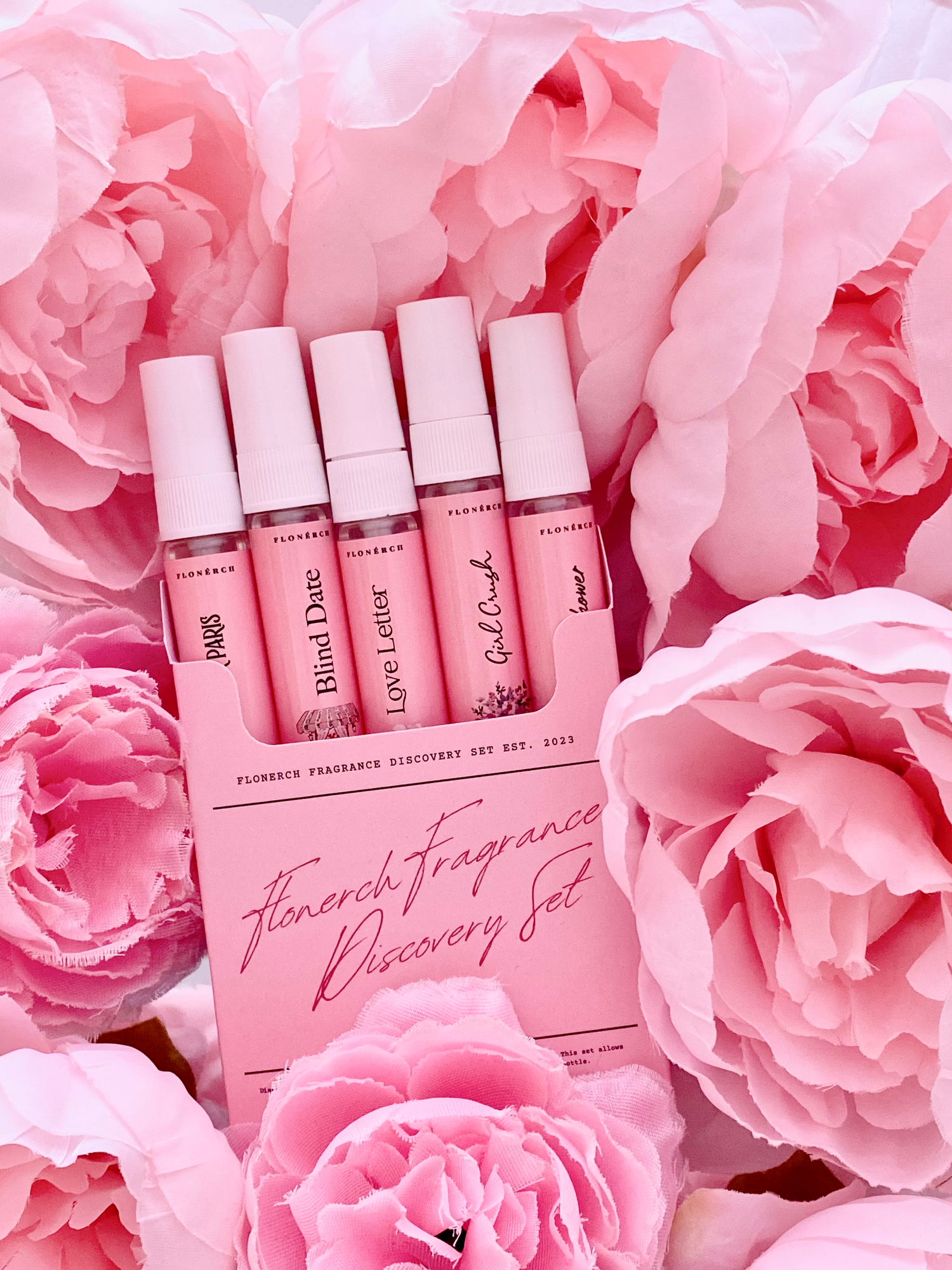 Parisian perfume dreams become reality as we unveil the Flonerch Fragrance Discovery Set. Five exquisite scents, five journeys of the senses, await your exploration. Embrace the invigorating city rain of After Shower, lose yourself in the sun-drenched laughter of Girl Crush or explore the other captivating scents with our Discovery Set. Each spritz, a whispered invitation to a unique Parisian adventure. This limited time Discovery Set let you imagine yourself, the protagonist of your own Parisian love story, enveloped in the fragrance that speaks your soul.